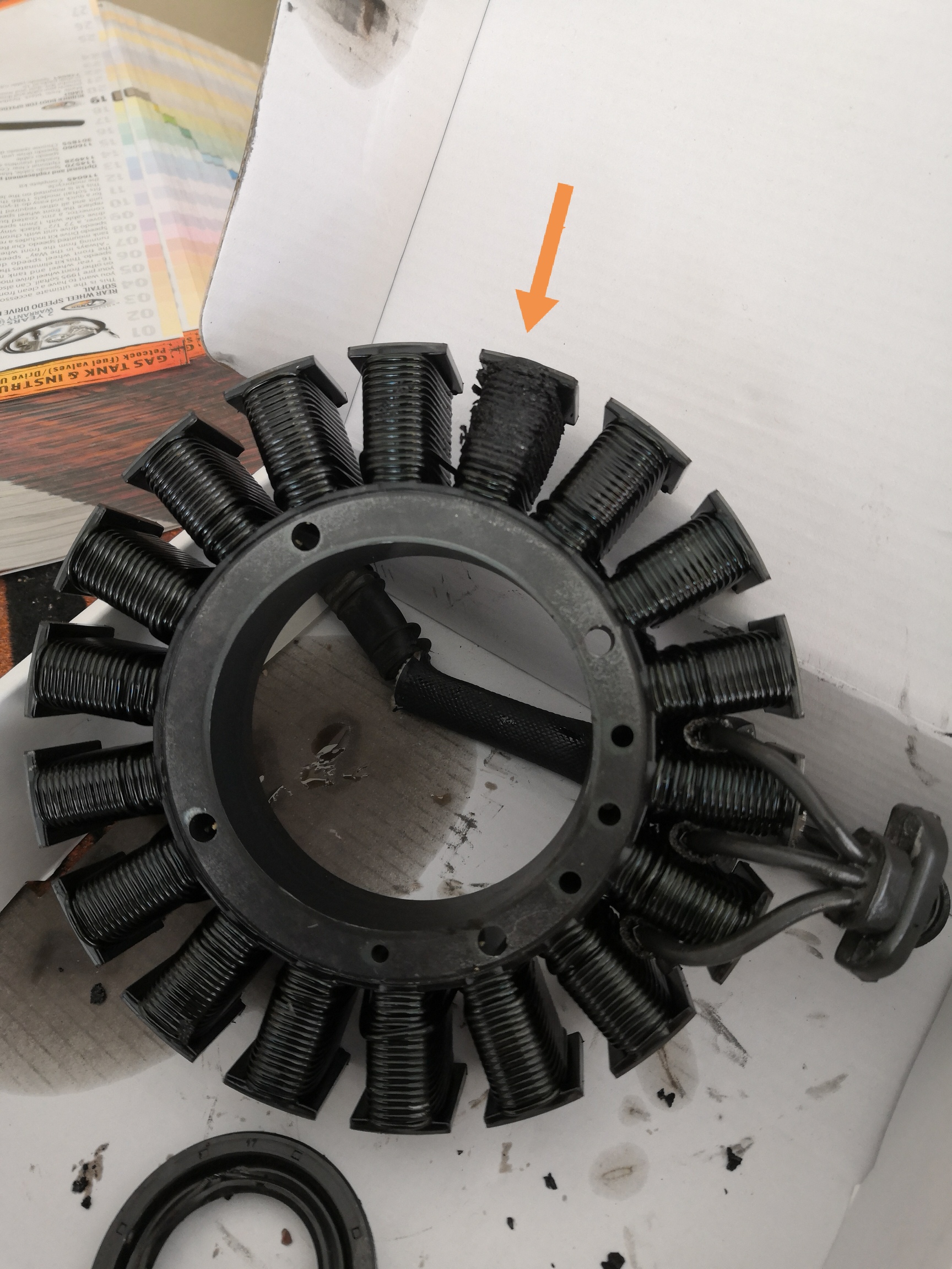 Mutta se miksi toi staattori on kähähtänyt on epäselvää. Voi olla se otti osumaa silloin syksyllä kun pyörä ei käynnistynyt ja akun miinus napa alkoi sulaamaan.