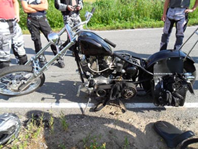 otin kaverin repun kyytiin ku siit men olkaremmi poikki.. hoijakkaa kiinni oman säkin päälle ja menoks..nooh eihän se siinä sitten pysyny,, ketjut imas sen mukaa ja repun sisältöö sitten eturattaan ympäri..takanakki lukkoo, perän heitti eka oikeelle puolelle ja sit ku mopo oli poikittain töppäs kunnol ja kaatu oikeelle kylellee ja kuski lähti satulas.. pientä murtumaa tuli ranteeseen yms.. sen verran ihmeellist et rattaan mutteris korkkas kierteet...