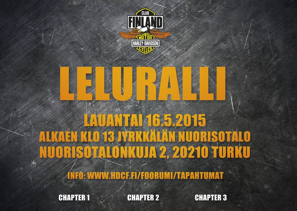 Ch1,Ch2 ja Ch3 Leluralli pidetään Jyrkkälän nuorisotalolla (Nuorisotalonkuja 2, Turku)