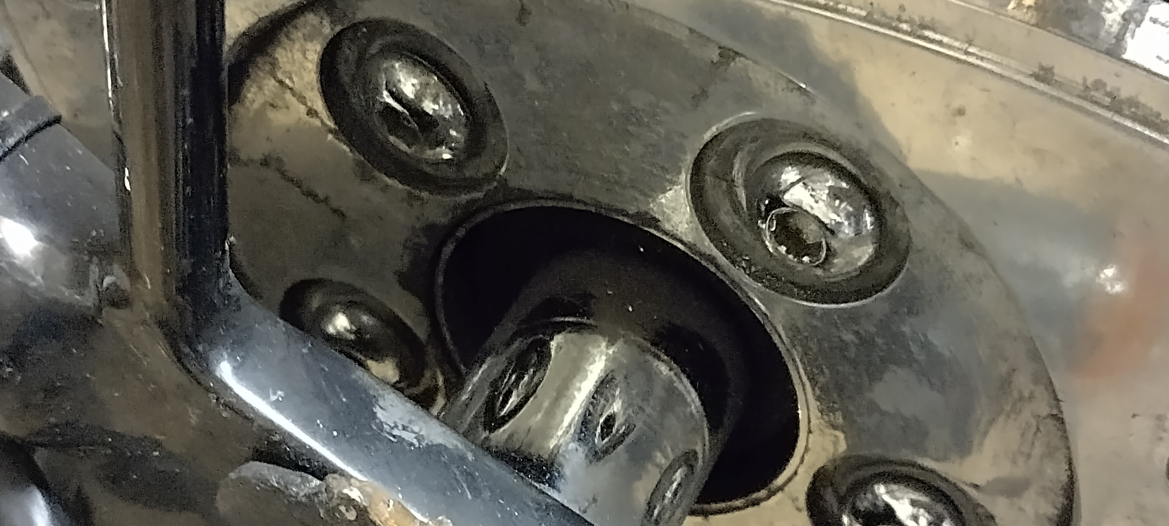 Mututuntumalla hihnapyörän reiät on tosi liki jotakin metristä kokoa. Kun vaihtelin omaan tehdasketjuvetoiseen hihnan, hain kiinnikkeet rautakaupasta. Mut saahan niitä tuumaisinakin ostella. Eli hakee viis uutta pulttia nyloc muttereilla plus passelit aluslevyt. Ja jättää torksit kauppaan ja ottaa kuuskanttiset, joita pääsee vääntämään tiukkaan ja saa joskus aukikin. Reikien soikeudella ei liene merkitystä, jos vaan pultin aluslevyn alle jää sileää pintaa. Keskityshän tulee vanteen olakkeesta.