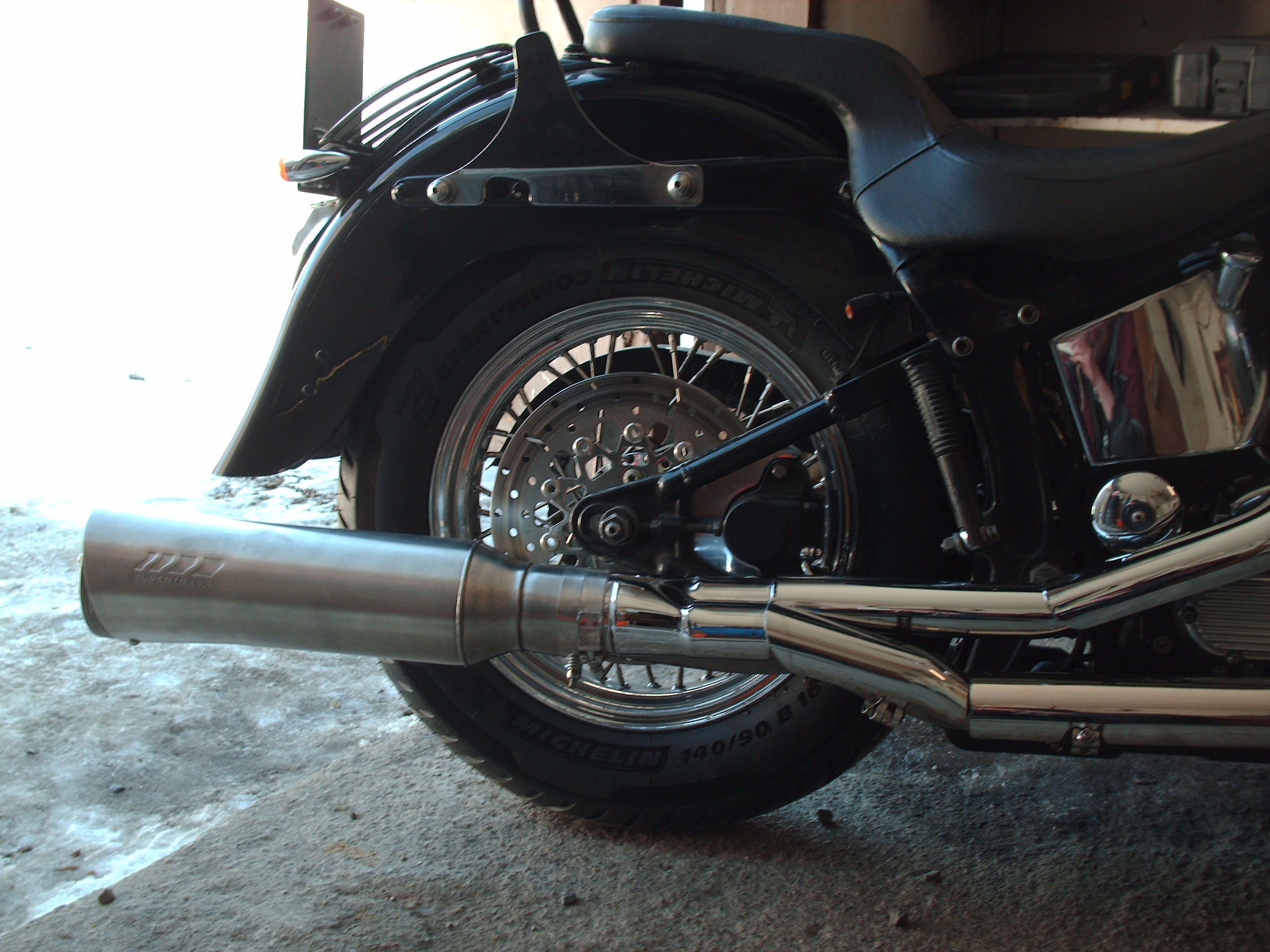 Putken halkaisja tulee olemaan sama 1 3/4 tuumaa koko matkalta ja vaimentimeksi olen ajatellut jotain H-D TC88 alkuperäistä, esim Dynan Slashcut. 1 kpl.