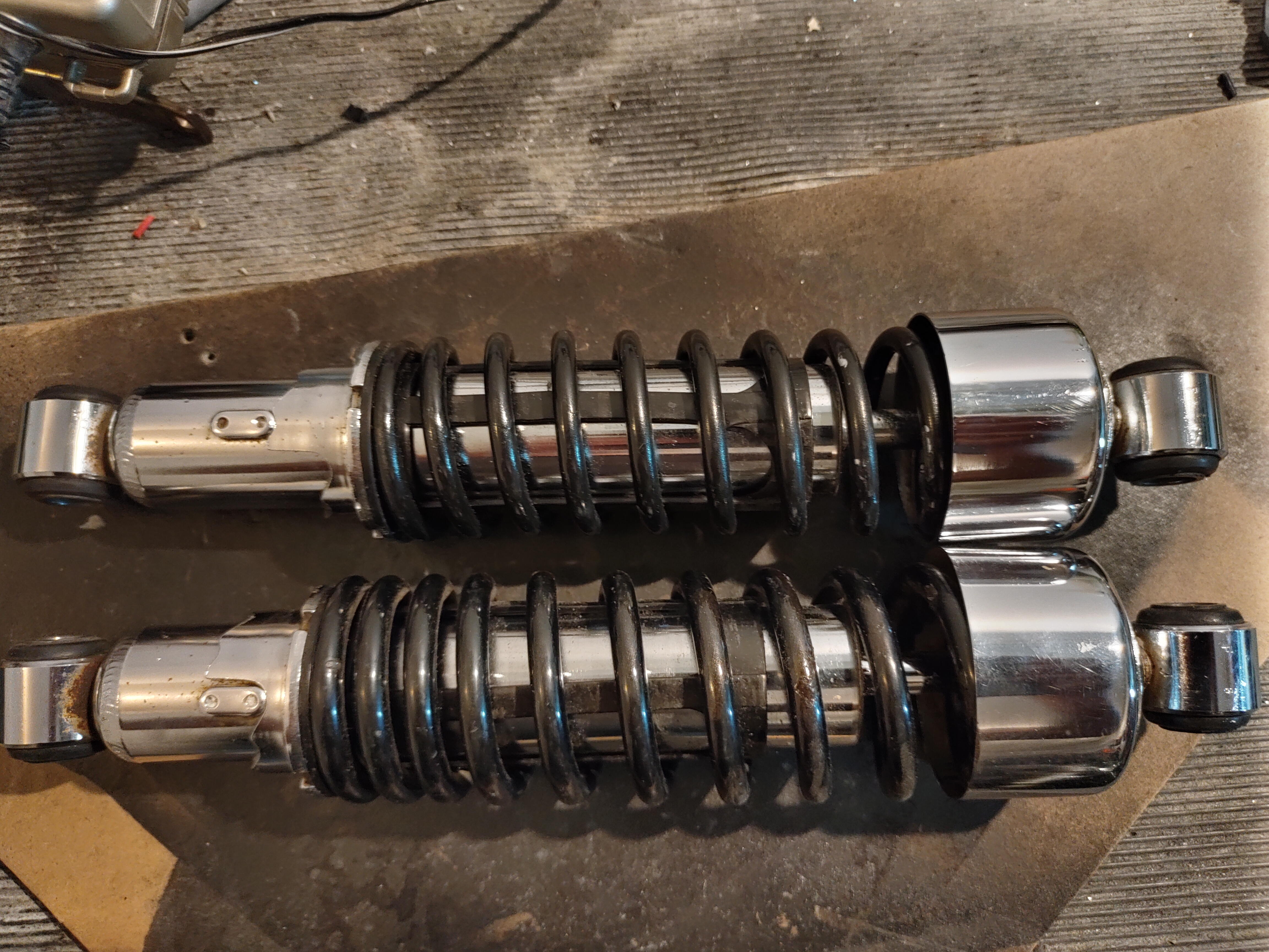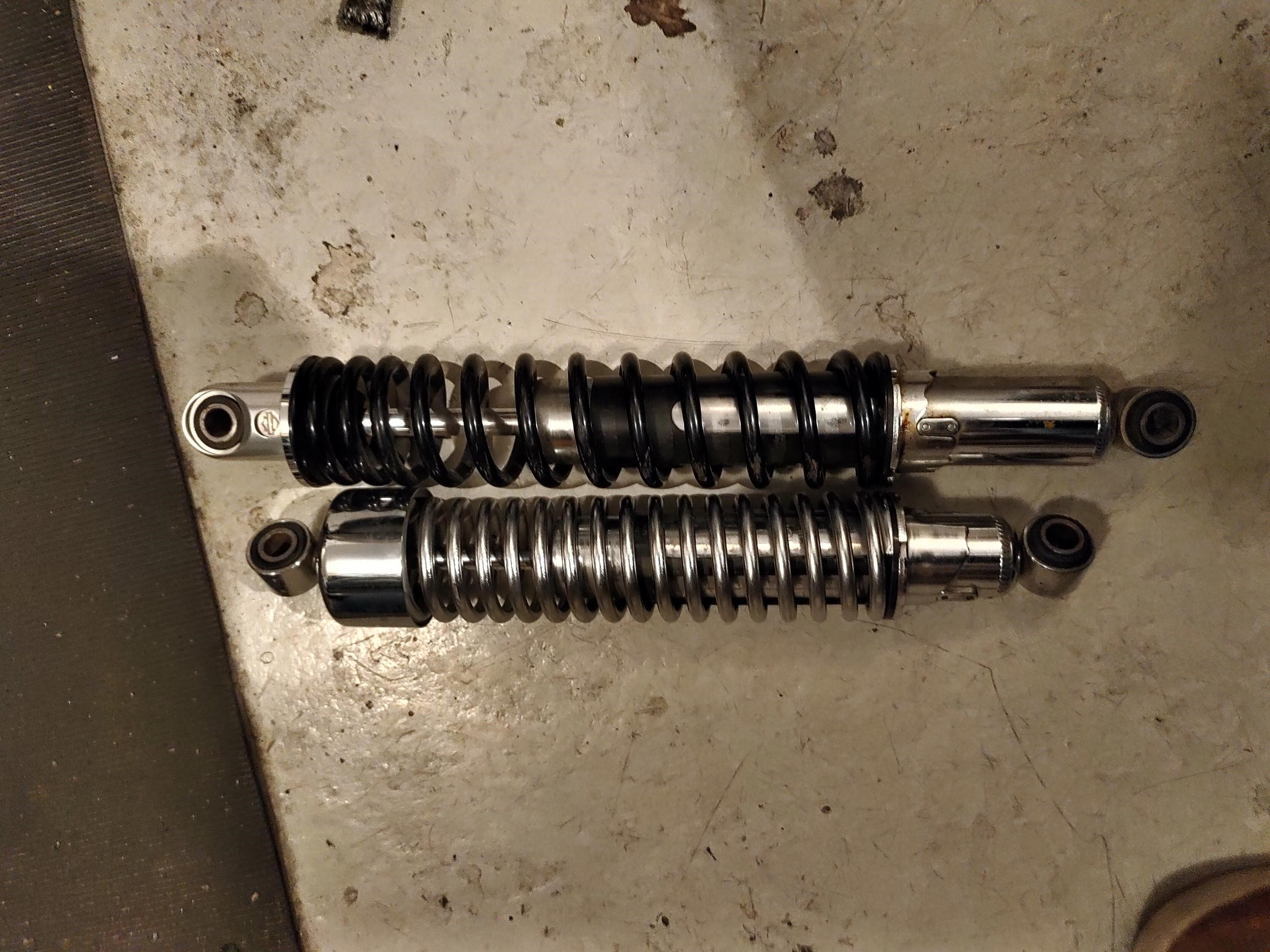 Tämä jäi päivittämättä... eli tuollaiset niistä tuli. Toinen on orkkis ja toinen V-Rodista yms. V-Rodin jousi on huomattavasti jäykempi kuin 30 vuotta vanhan Sportin vastaava. Lisäksi V-Rodin jousi on hieman pidempi.